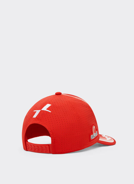 This Replica 2026 baseball cap faithfully reproduces the design of the original model worn by Charles Leclerc during the Formula 1 World Championship. Designed for younger fans, it features the iconic Scuderia red with white accents, a central Ferrari shield, and a contrasting Puma logo on the visor. The car number applied to the visor pays homage to the driver's unmistakable style. A unique accessory, created to bring the energy of Formula 1 beyond the circuit.
